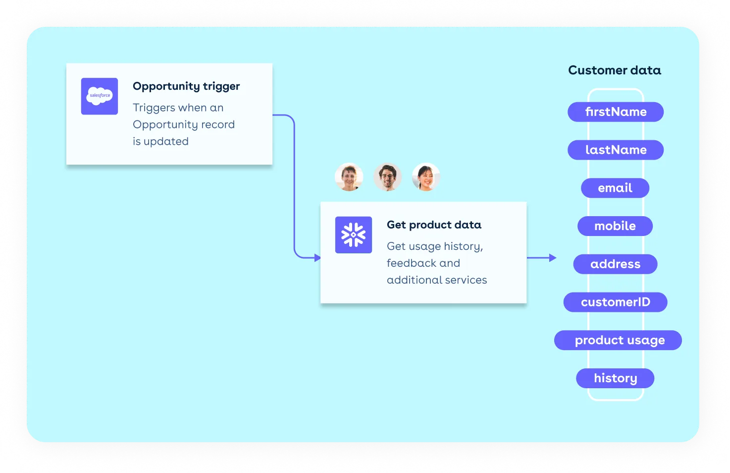 Seamlessly connect your platform with customer and third party data to unlock powerful automation. Automate complex business processes and sync information between systems based on visual logic.