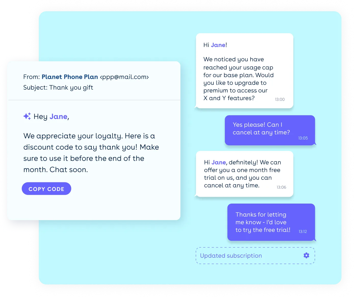 Leverage your platform’s unique first-party data to drive conditional logic, personalised paths, and relevant actions.